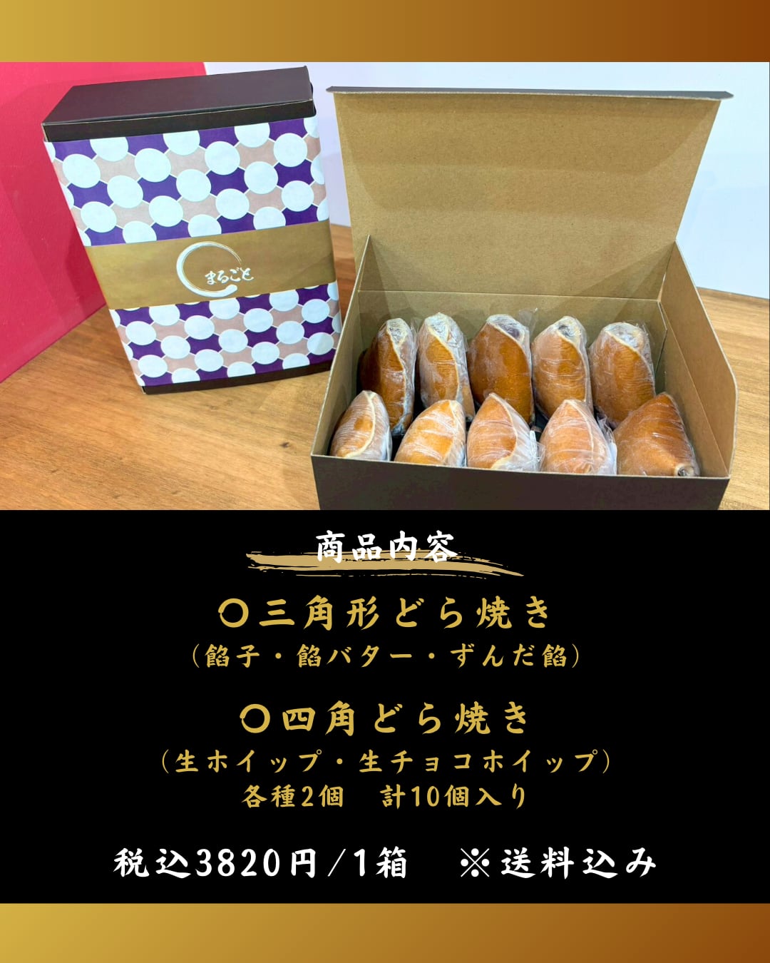 お歳暮セット どら焼き10個【三角 餡子・餡バター・ずんだ2個ずつ】【四角 生チョコホイップ・生ホイップ2個ずつ】